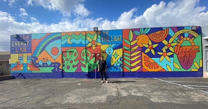 This mural came to life in 2021 to commerate The Energy Lab's 10 year anniversary. Artist, Hanna Gundrum, worked with owners, Jill and Sean Rooks, to bring their vision to life. The faithful Energy Lab community even jumped in to help paint! This whole mural was completed in 2 days!