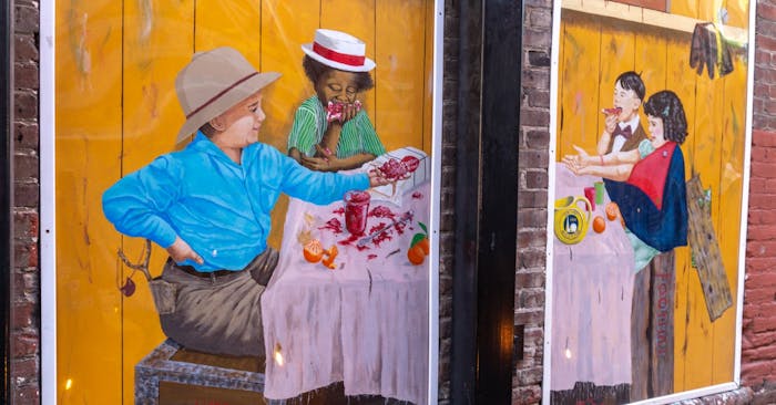 This Umbrella Alley mural has sentimental significance to Tim Rochford of Rochford Foundation. He and his family have always loved Little Rascals, and so Larry Dierforff turned their nostalgia into art for the community to enjoy.