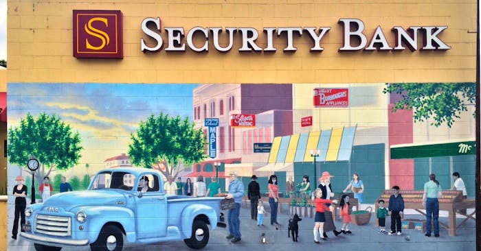 Mural by Larry Dierdorff done in 2001. Located on the Community Bank building, Citrus Ave and 6th St.