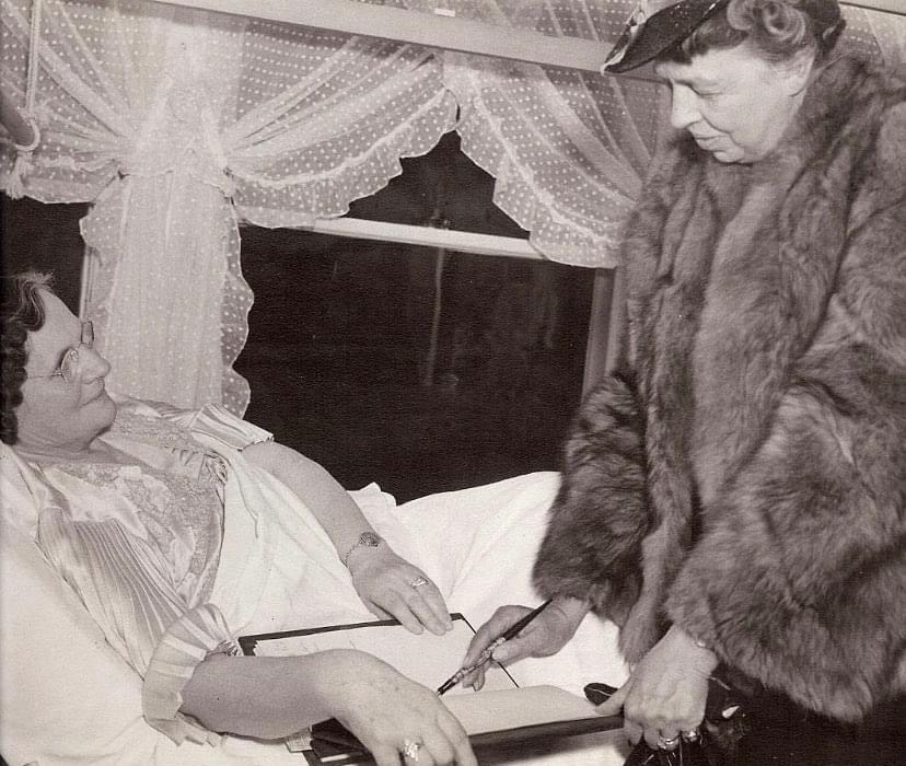 Redlands Bowl founder Grace Mullen on April 3, 1940, at her home where she was recuperating from a fractured hip. Mullen had been unable to attend Roosevelt’s Redlands Community Music Association (now Redlands Bowl Performing Arts).